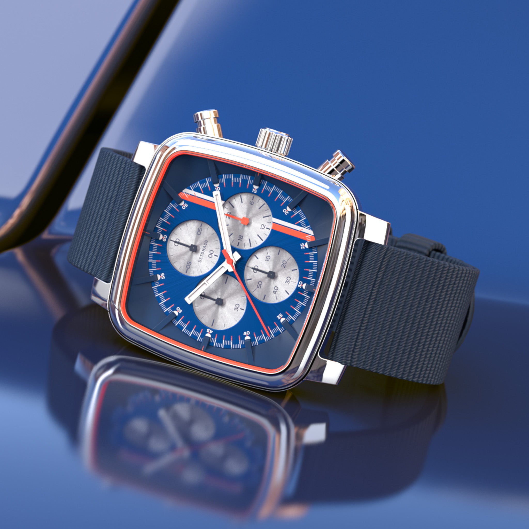 Nice chronograph with design references from motorsport. With the 4 displays, they are also visually designed for time keeping. The mesh watch strap goes well with it, but I personally prefer leather straps.