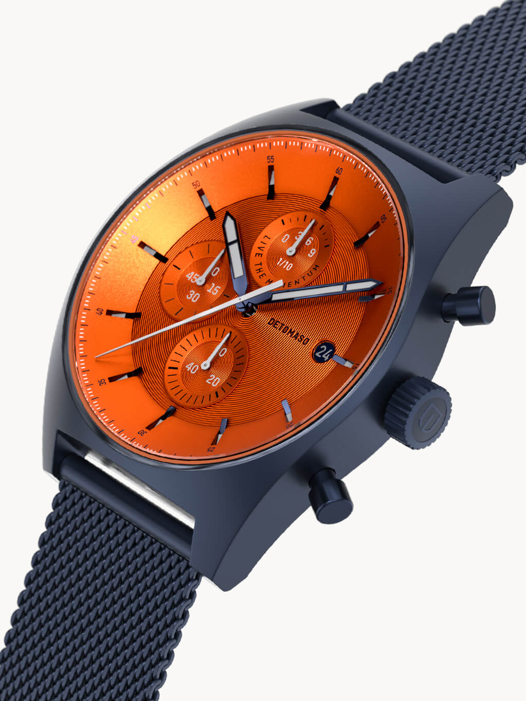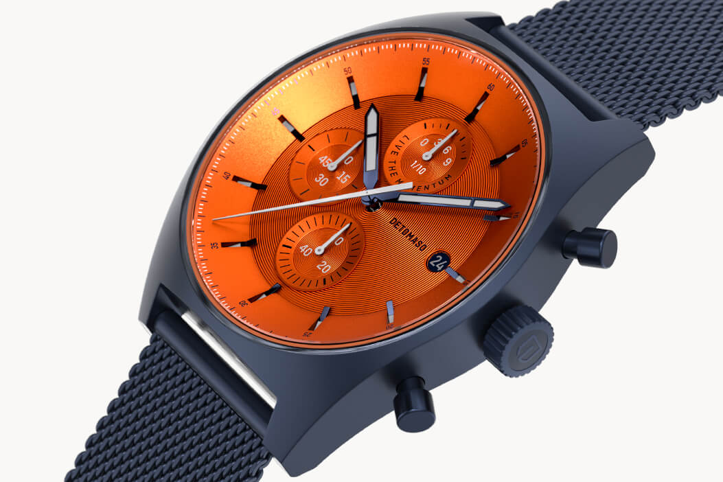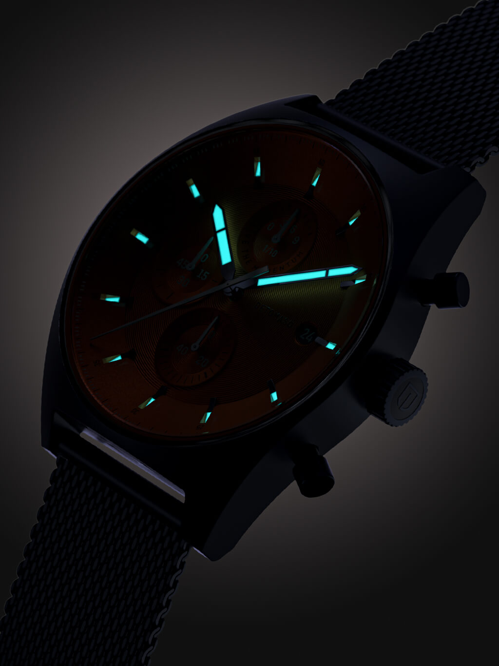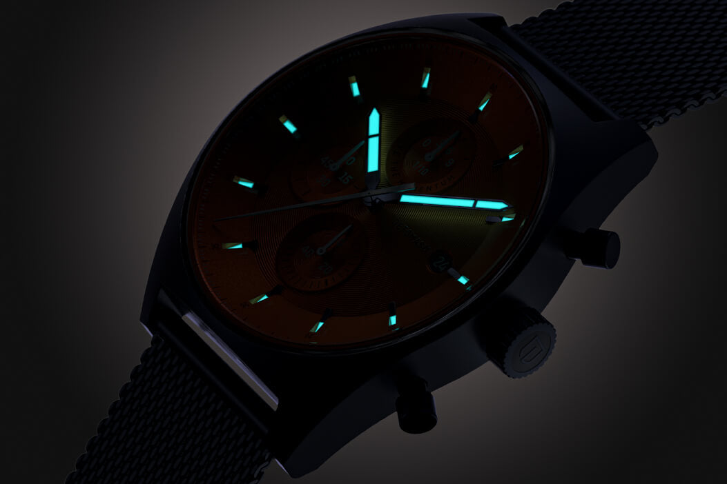 A highlight of the D10 CHRONOGRAPH becomes truly visible in the dark. The hour and minute hands are coated with Superluminova. In the dark, these elements begin to glow – allowing you to read the time at a glance, even at night.