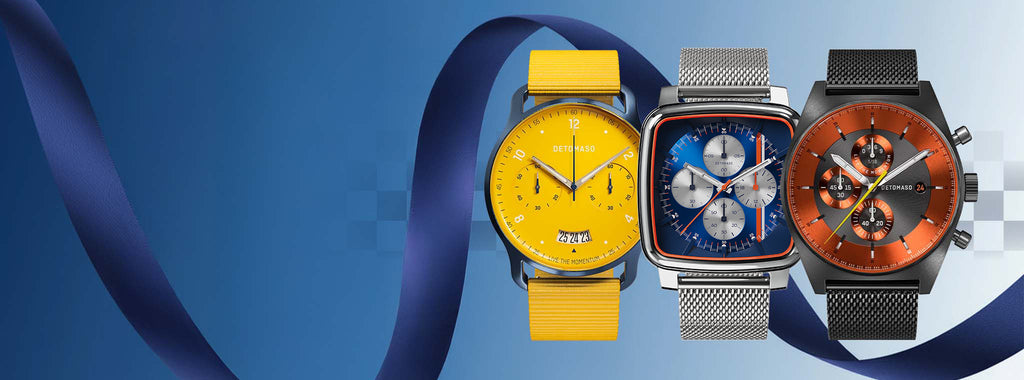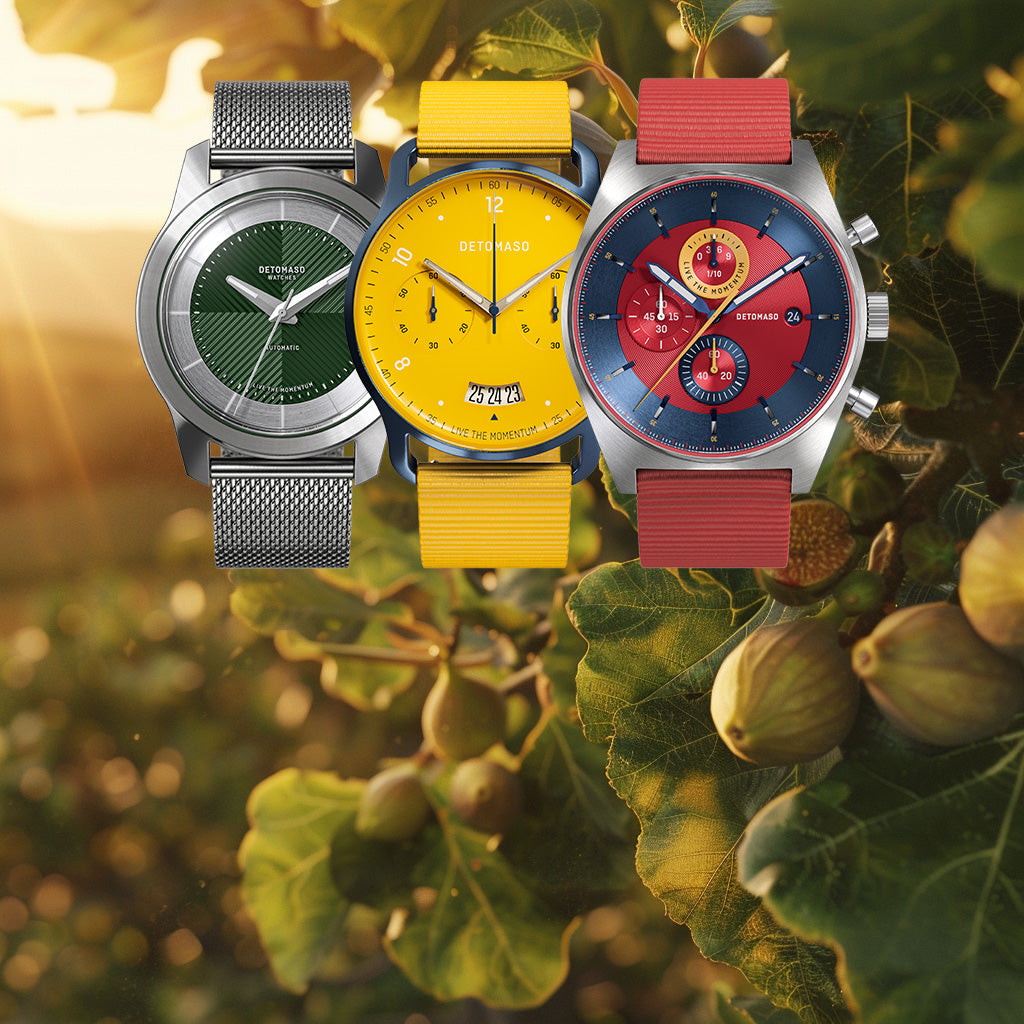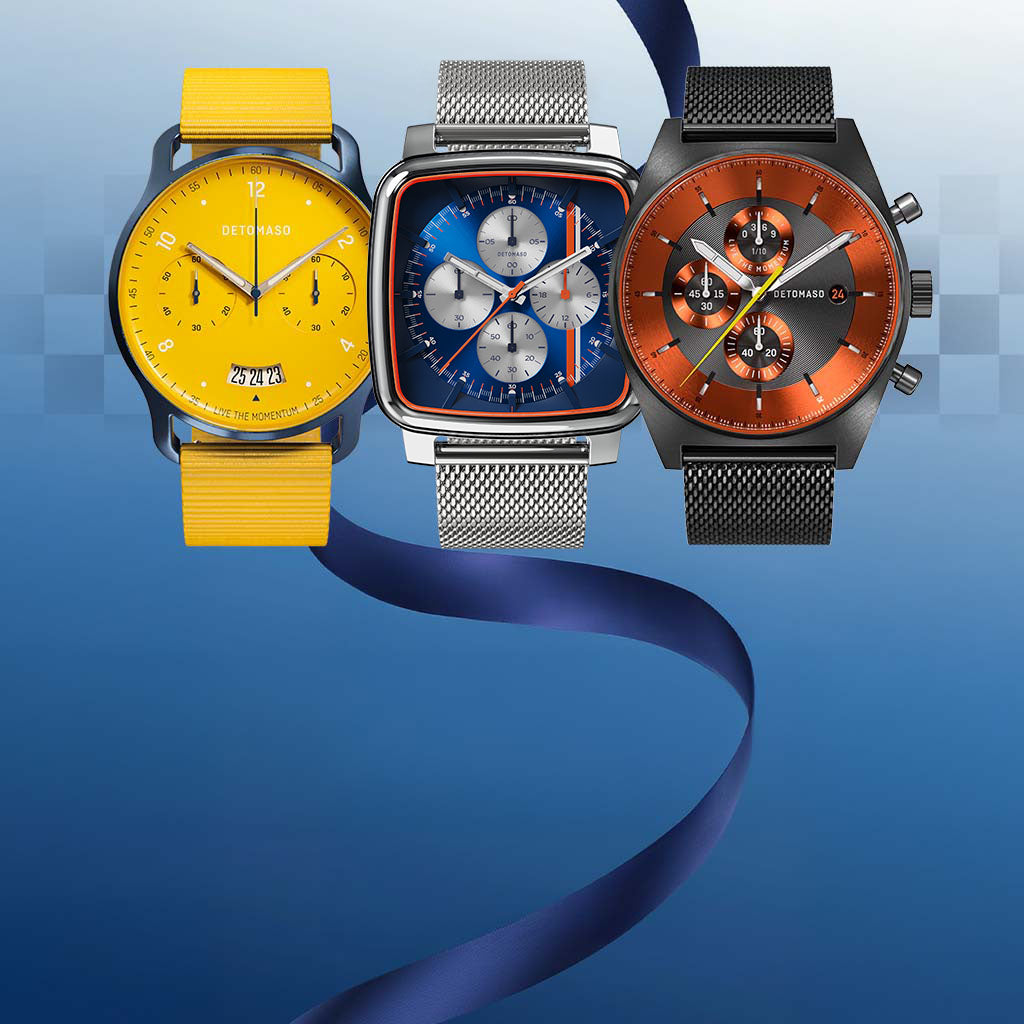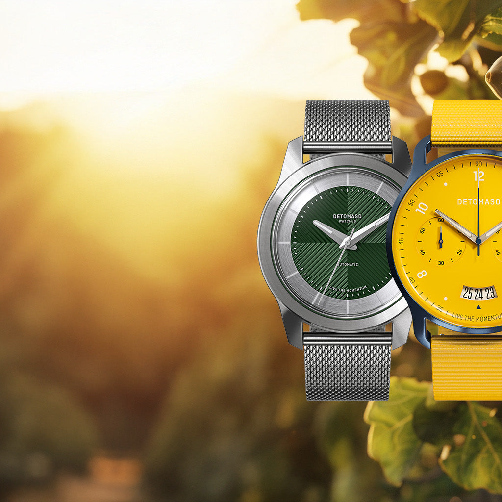 Inspiration struck for DETOMASO watches on a road trip through Italy in a 1970s classic Italian sports car. The beautiful Italian countryside combined with the legendary design of the classic car are what brought DETOMASO to life. Each watch model is not only a statement of quality, but a testament to our story of breaking the chains of everyday life and experiencing one's own freedom - LIVE THE MOMENTUM.