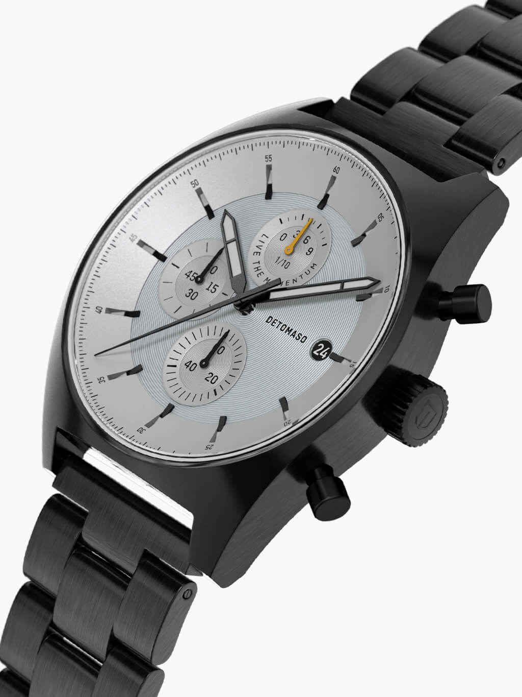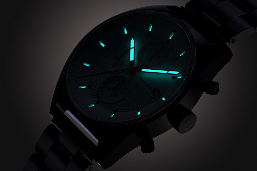 A highlight of the D10 CHRONOGRAPH becomes truly visible in the dark. The hour and minute hands are coated with Superluminova. In the dark, these elements begin to glow – allowing you to read the time at a glance, even at night.