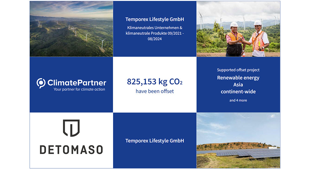 La crisis del clima nos afecta a todos. Como empresa responsable con un enfoque sostenible, queremos poner nuestro granito de arena para frenar el calentamiento global. Puesto que la fabricación de todo producto tiene un cierto impacto en el medio ambiente, queremos reducir esa carga. Ya hemos alcanzado una etapa muy importante en este camino: desde 2020 los productos DETOMASO dejan huella de carbono 0. ¿Cómo lo hemos conseguido? Estas son las medidas que hemos tomado: