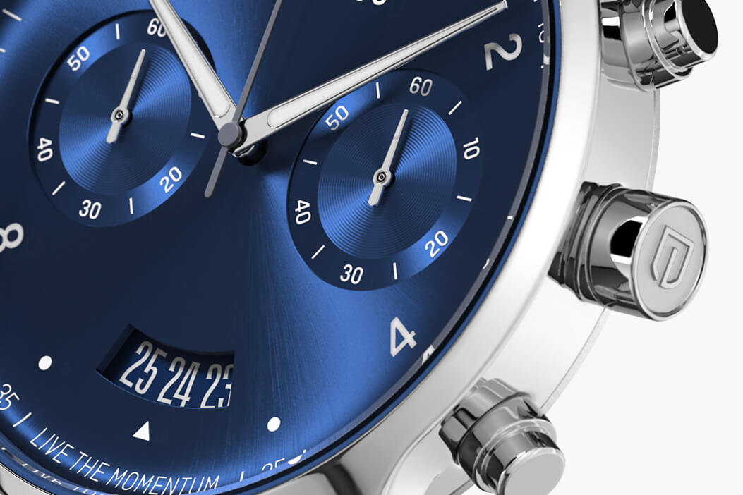 Esfera en forma de rayos de sol con ojos de cronógrafo bajos