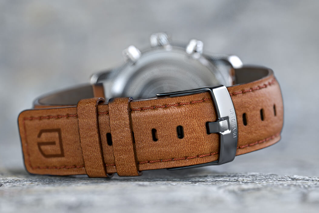 Tanto si se trata de desplazarse por las colinas de la Toscana en un asiento de cuero o tener un agarre firme del volante: el confort es el alfa y el omega de cada viaje. Lo mismo ocurre con la elección del reloj: no solo el diseño, sino también la comodidad es decisiva. Solo se utiliza la magistral artesanía italiana para crear la suave correa. Y, ya que el cuero usado se ha tratado solo con agentes curtientes vegetales, ¡también es hipoalergénico y respetuoso con el medioambiente!