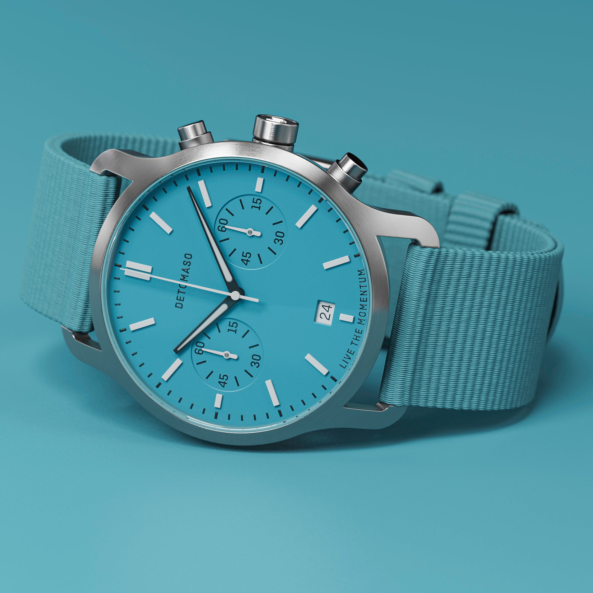 Le mouvement complexe du fabricant traditionnel Miyota est doté d'une fonction chronographe. Deux poussoirs sur le côté du boîtier suffisent pour l'utiliser : un premier poussoir déclenche les indicateurs du chronographe, un deuxième poussoir les arrête. Pour ne pas perdre la notion du temps, le SORPASSO CHRONOGRAPH garde également toute la journée à portée de vue avec sa fonction date.
