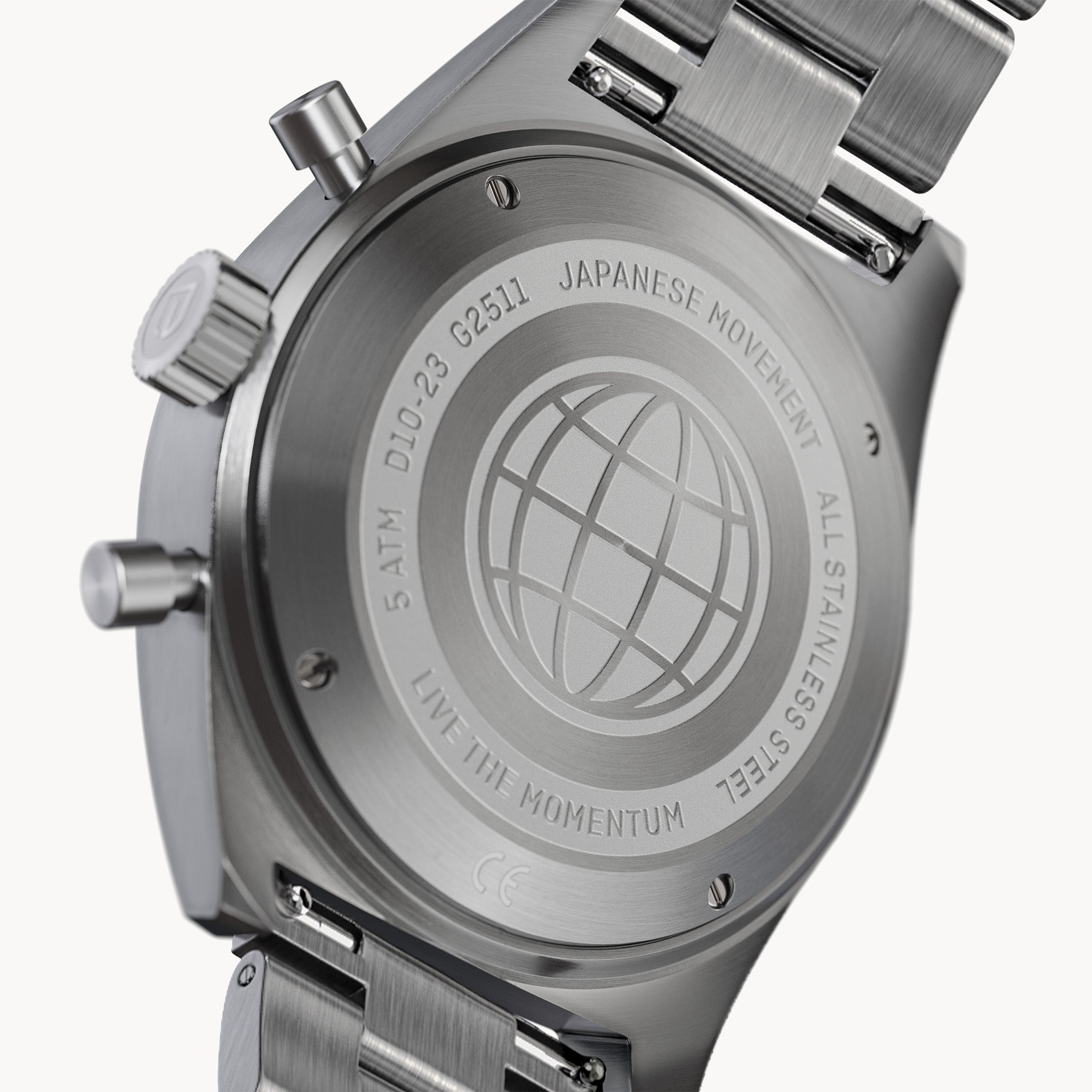 Lasciati trasportare dalla sensazione di libertà: Il D10 CHRONOGRAPH, con il suo design dinamico, incarna l'emozione del partire per un viaggio. Quando poi arrivi a destinazione e il sole tramonta, il cronografo continua a brillare anche di notte – grazie al Superluminova sulle lancette delle ore e dei minuti e sugli indici.