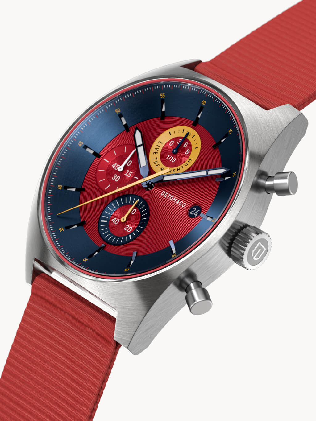 Lasciati trasportare dalla sensazione di libertà: Il D10 CHRONOGRAPH, con il suo design dinamico, incarna l'emozione del partire per un viaggio. Quando poi arrivi a destinazione e il sole tramonta, il cronografo continua a brillare anche di notte – grazie al Superluminova sulle lancette delle ore e dei minuti e sugli indici.