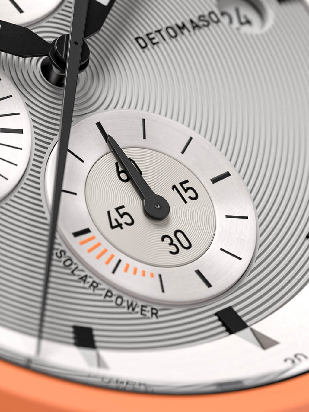 Per verificare lo stato energetico del D10 CHRONO SOLAR, è sufficiente premere il pulsante B per più di un secondo. Lo stato energetico verrà quindi visualizzato nel quadrante cronografico inferiore. Naturalmente, l'orologio continua a funzionare anche in assenza di luce, fino a cinque mesi. E quando è scarico, bastano poche ore alla luce per ricaricare l'orologio.