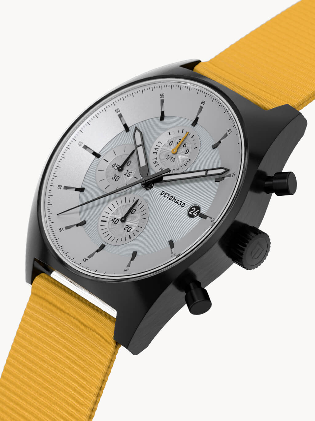Lasciati trasportare dalla sensazione di libertà: Il D10 CHRONOGRAPH, con il suo design dinamico, incarna l'emozione del partire per un viaggio. Quando poi arrivi a destinazione e il sole tramonta, il cronografo continua a brillare anche di notte – grazie al Superluminova sulle lancette delle ore e dei minuti e sugli indici.