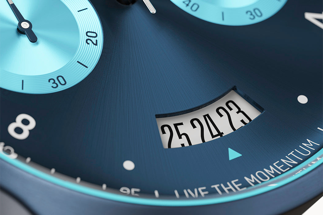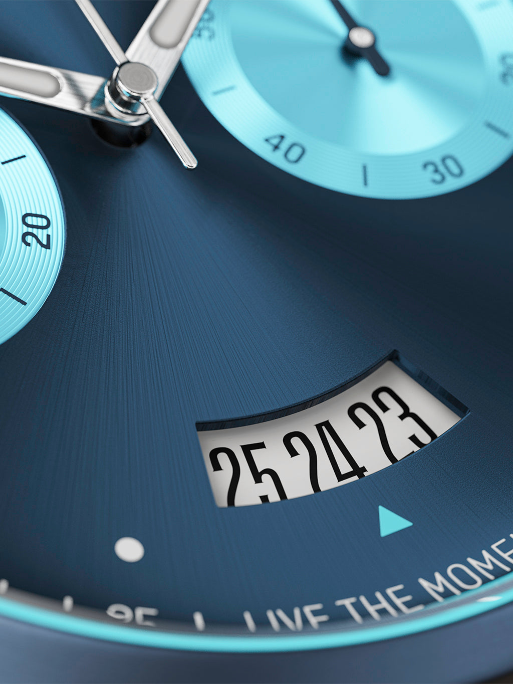 Gewölbtes Zifferblatt mit tiefergelegten Chronographen-Augen