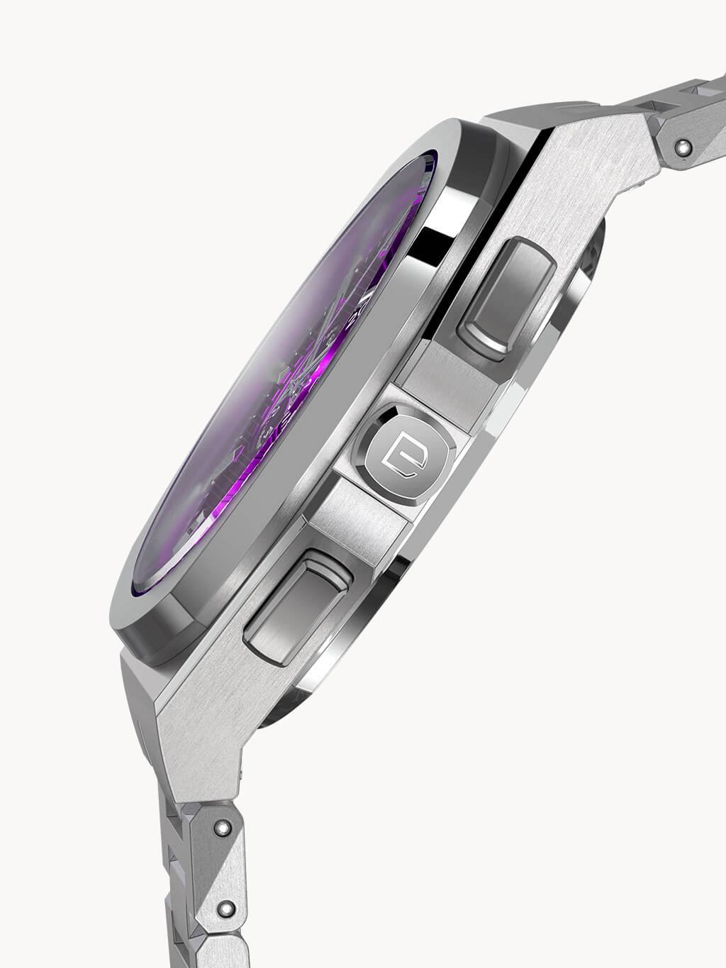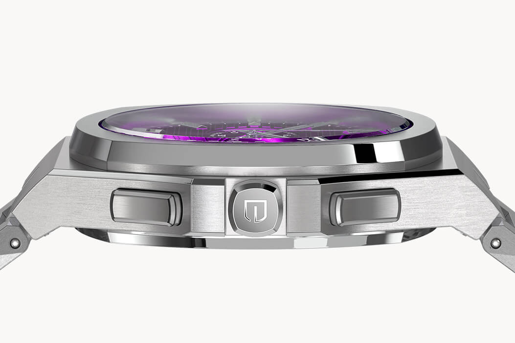 Schon auf dem ersten Blick wird klar, dass der limitierte VOLTRE CHRONOGRAPH eine besondere Uhr ist. Das Zusammenspiel glänzender und schimmernder Kanten trifft auf ein Zifferblatt mit leichtem 3D-Effekt. Doch hinter seiner außergewöhnlichen Fassade steckt auch spannende Technik: Das hochwertige Quarzwerk und eine mechanische Chronographen-Funktion vereinen Präzision mit mechanischem Luxus.