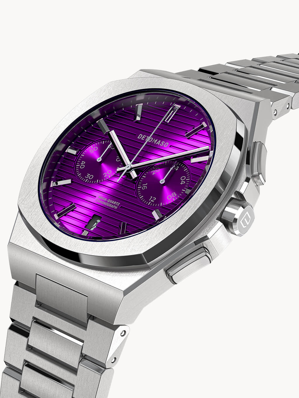Der VOLTRE CHRONOGRAPH ist die erste Uhr mit Meca-Quarz-Uhrwerk im Hause DETOMASO. Das hybrid-mechanische Uhrwerk sorgt dafür, dass sogar Sekunden ganz genau gemessen werden können. Um das luxuriöse Gefühl der mechanischen Funktion zu unterstützen, schmiegen sich die ergonomisch geformten Drücker ganz natürlich an den Finger. Sodass der Träger sich wünscht, öfter die Zeit anhalten zu können.