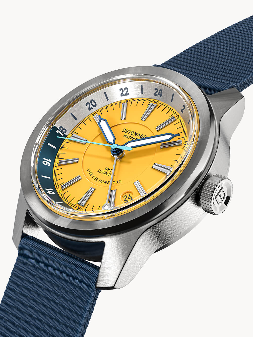 Mach dich auf und entdecke die Welt auf eine völlig neue Art und Weise. Mit unserer Automatikuhr mit GMT-Funktion im Gepäck behältst du die Zeit im Blick. Ob du zu Hause bist oder am anderen Ende der Welt – stets bist du über unterschiedliche Zeitzonen informiert!