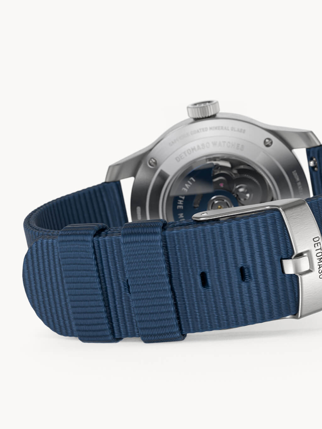 The first time, the recycled thin plastic bracelet didn't fit. The metal bracelet goes better with the quite “massive” Aviatore, but that is also an automatic watch. The date display is very small.