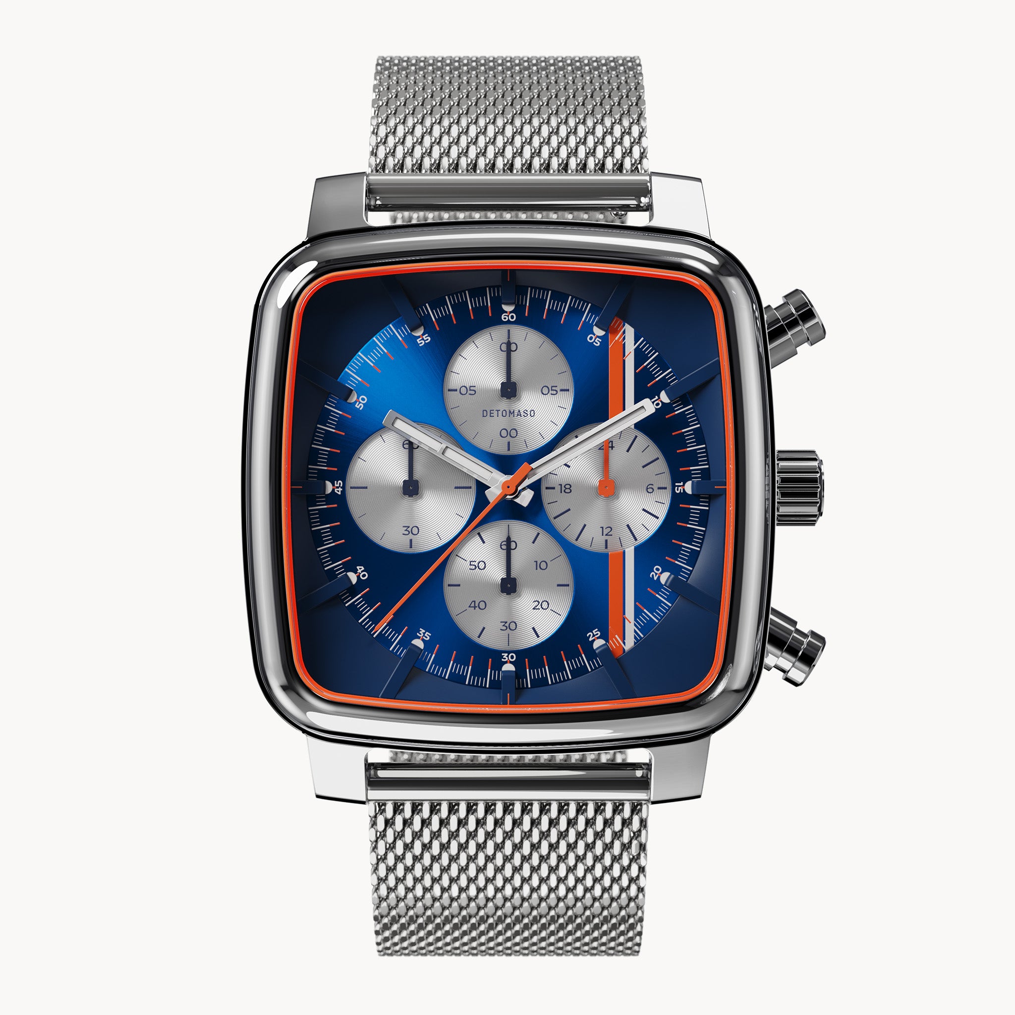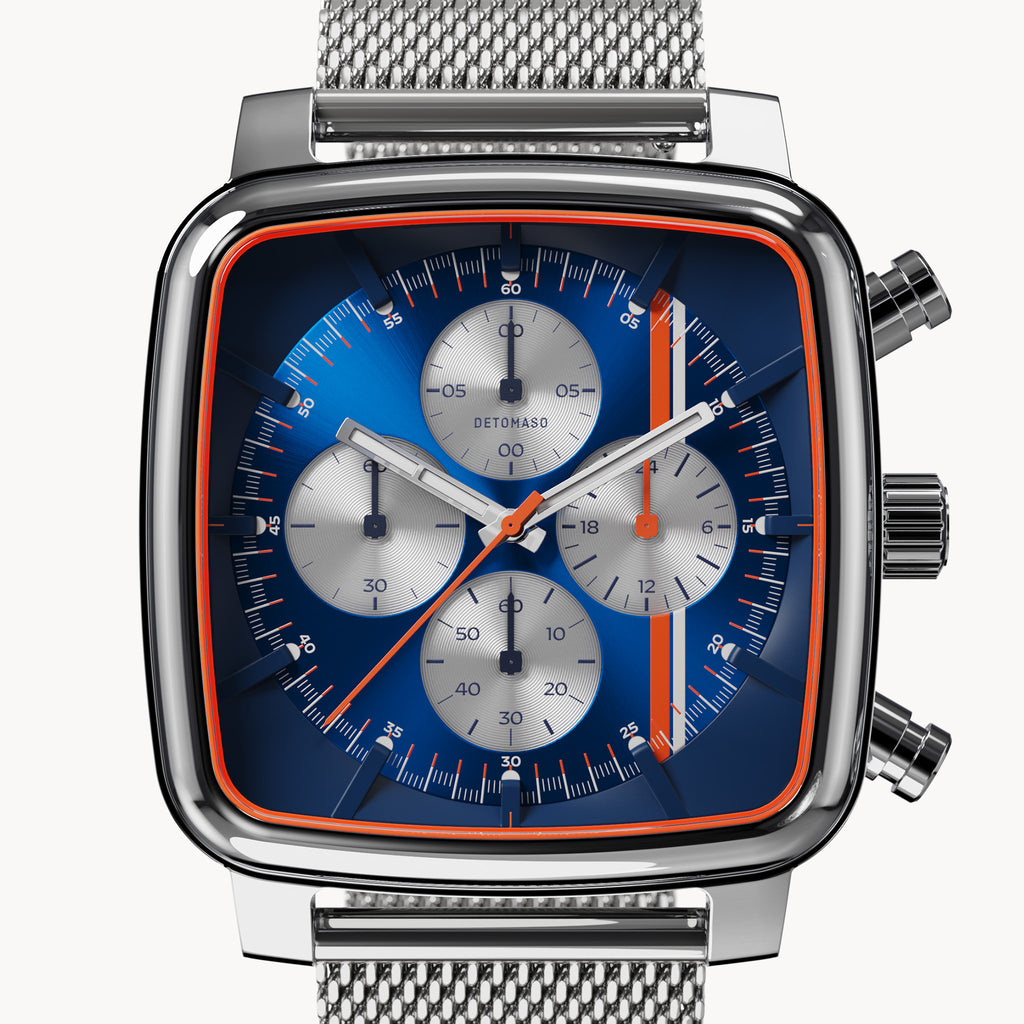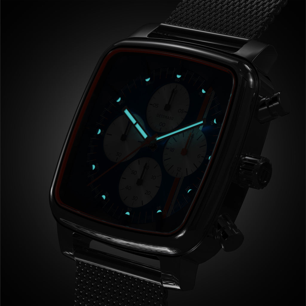 Das viereckige, abgerundete Gehäuse, das Zifferblatt mit den vier zusätzlichen Anzeigen, Superluminova-Elementen und sogar Details wie die Zeigerform sind durchzogen von Vintage-Racing-Charme.